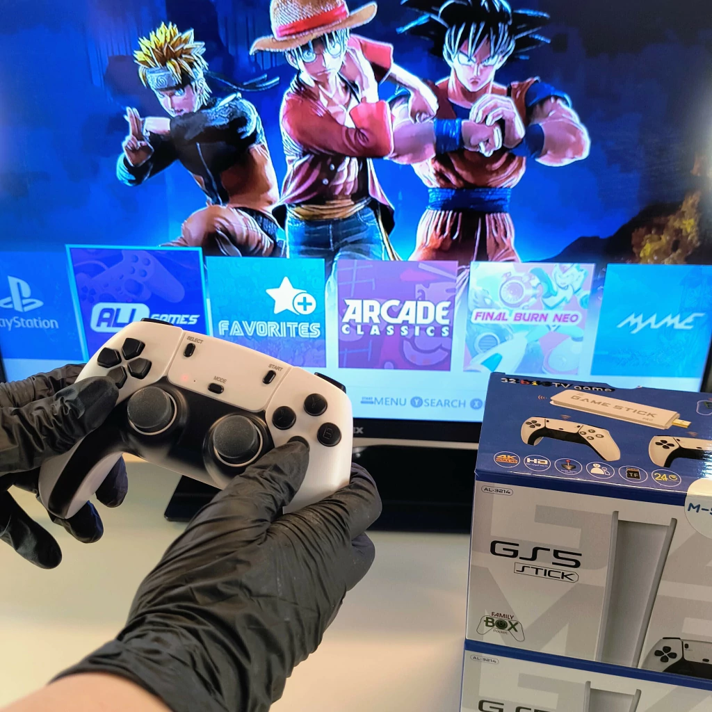 ¡Revive los clásicos de la infancia con la consola retro Game Stick Pro! Conecta y juega tus juegos favoritos de PS1, GBA, SNES, MD, Neogeo y MAME directamente en tu TV. Incluye dos gamepads inalámbricos para una experiencia sin ataduras y la posibilidad de guardar partidas para continuar tu aventura en cualquier momento.
